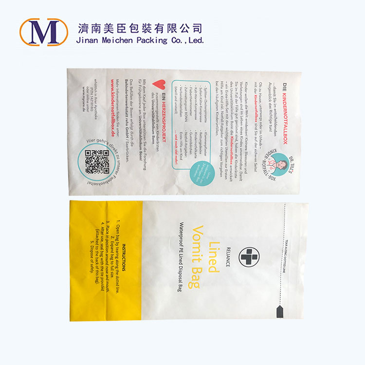 Nuestra bolsa de vómito de hospital de alta calidad está hecha de papel y PE. El interior de PE puede mantener la bolsa a prueba de agua. Cuando quiera vomitar o dejar algo de basura en el hospital. La bolsa de vómito será útil y conveniente.